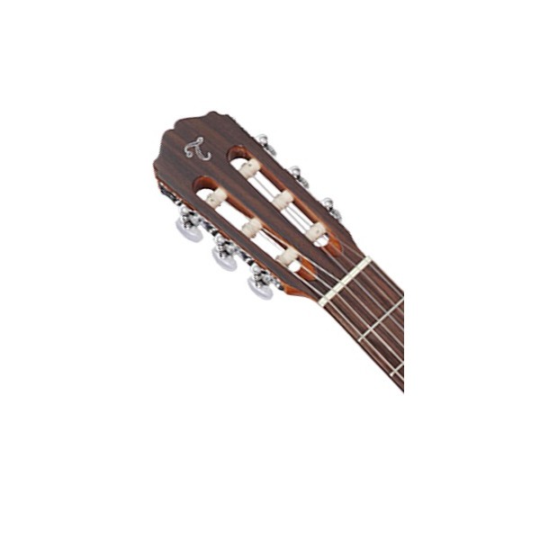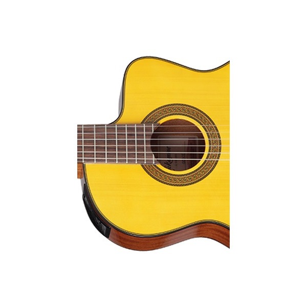 Takamine G-SERIES CLASSICAL GC3CE-NAT классическая электроакустическая гитара готовая к вашим выступлениям на сцене в любой момент. Ее корпус с удобным венецианским вырезом раскрывает все оттенки звука нейлоновых струн благодаря топу из массива ели и деки из махагони, которые придают инструменту богатый глубокий резонанс. Удобный гриф из махагони и палисандровая накладка дополняют комфорт игры на этой гитаре, а инкрустация розетки гитары ввиде мозаики придают инструменту элегантный внешний вид. Гитара оснащена 3-х полосным преампом Takamine TP-4T, отлично передающим акустический звук дерева и струн.