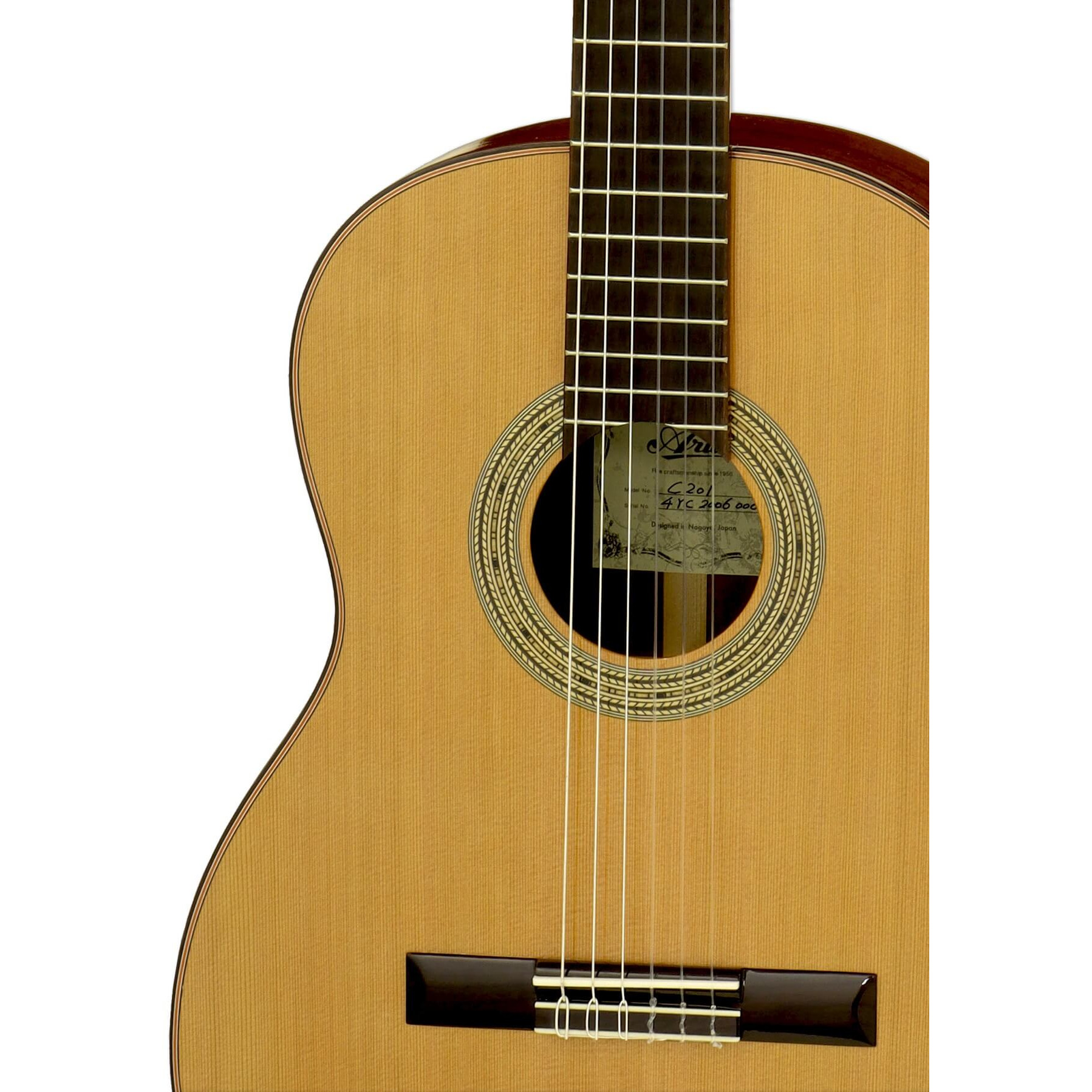 ARIA C201 - это классическая шестиструнная полноразмерная гитара серии El Clasico, изготовленная по традиционной испанской технологии. Верхняя дека выполнена из массива кедра, нижняя дека и обечайка из красного дерева. Гриф гитары изготовлен из красного дерева с накладкой из палисандра.
