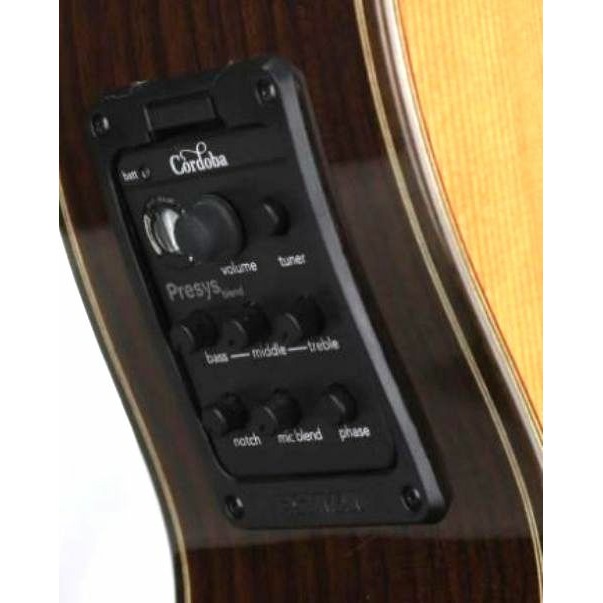 CORDOBA IBERIA C7-CE представляет собой классическую гитару с нейлоновыми струнами со звукоснимателем и предусилителем Fishman Presys Blend. Серия - Iberia. Благодаря использованию массива древесины в конструкции деки, эта гитара обладает богатым, насыщенным звучанием. Внешне инструмент имеет классический, узнаваемый стиль, дополненный нотками современных компонентов. Бренд Cordoba, основанный в 1997 году, воплощает эволюцию классической испанской гитары. Продолжая эти добрые традиции Cordoba начинает покорять новые вершины звука, представляя прекрасные классические гитары с премиальным звучанием.