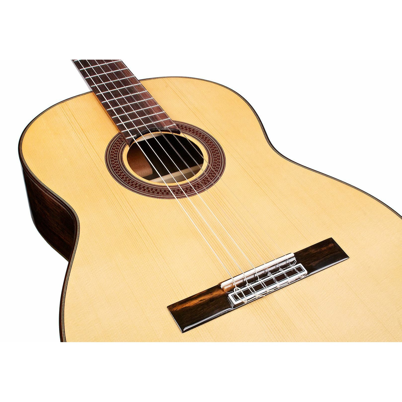 CORDOBA IBERIA C7 SP – элегантная классическая гитара, модель, давно выпускаемая Cordoba, улучшенный аналог Iberia С5. Представленная модель - с верхней декой из цельной древесины европейской ели в сочетании с нижней декой и обечайкой из палисандра. Версия С7 с еловым топом обладает чистым, четким, ярким звуком. Как многие из инструментов производства Cordoba, C7 имеет веерную систему пружин, которая оставляет больше поверхности для наилучшей передачи вибрации струн. Более чувствительная дека позволяет получить более громкий звук и улучшенные акустические характеристики. Гриф 0 из красного дерева, профиля «С». Накладка – из палисандра, на грифе 19 ладов без инкрустации. С7 – это отличный выбор для начинающих гитаристов, а также для тех, кто уже неплохо владеет инструментом. Отличительные черты инструмента: выполненная вручную инкрустация розетки деревом, окантовка из палисандра, палисандровые бридж и накладка грифа. Гитара представлена в натуральном цвете с глянцевой полиуретановой отделкой. На инструменте установлены струны Savarez Cristal Corum High Tension 500CJ.