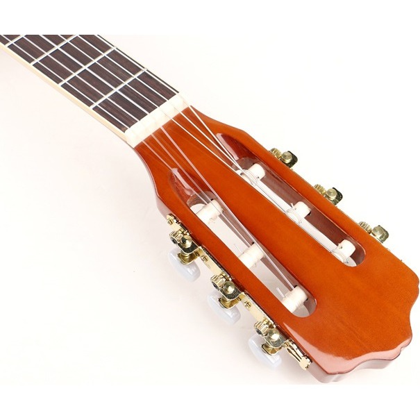 Верхняя дека гитары выполнена из ели, которая делает звук ярким и понятным. Обечайка и нижняя дека изготовлены из тополя. Удобный гриф из махагони придает звучанию мягкость и теплоту. Палисандровая накладка на гриф обеспечивает отличный баланс.