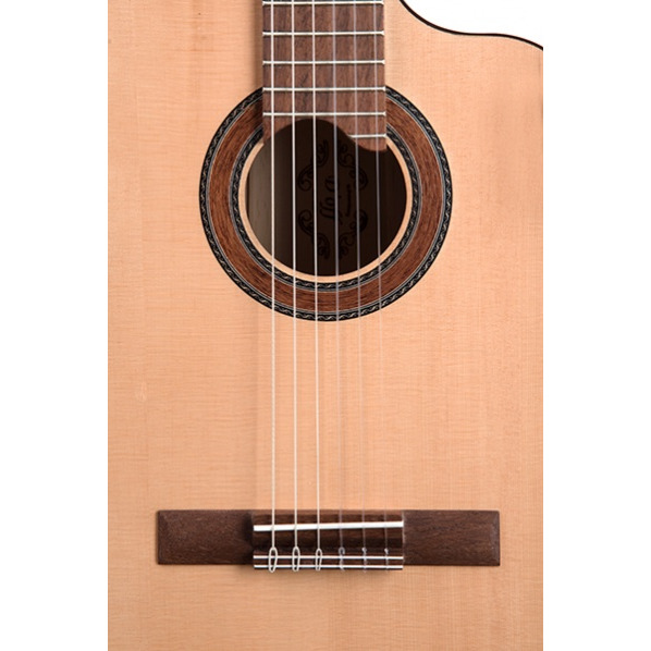 Форма корпуса классика с катавем, длина корпуса 490 мм, ширина нижней части 375 мм, толщина корпуса от 95 до 110 мм. Корпус сделан из массива клена, верхняя дека сделана из массива кавказской ели, окантовка ударопрочный пластик.