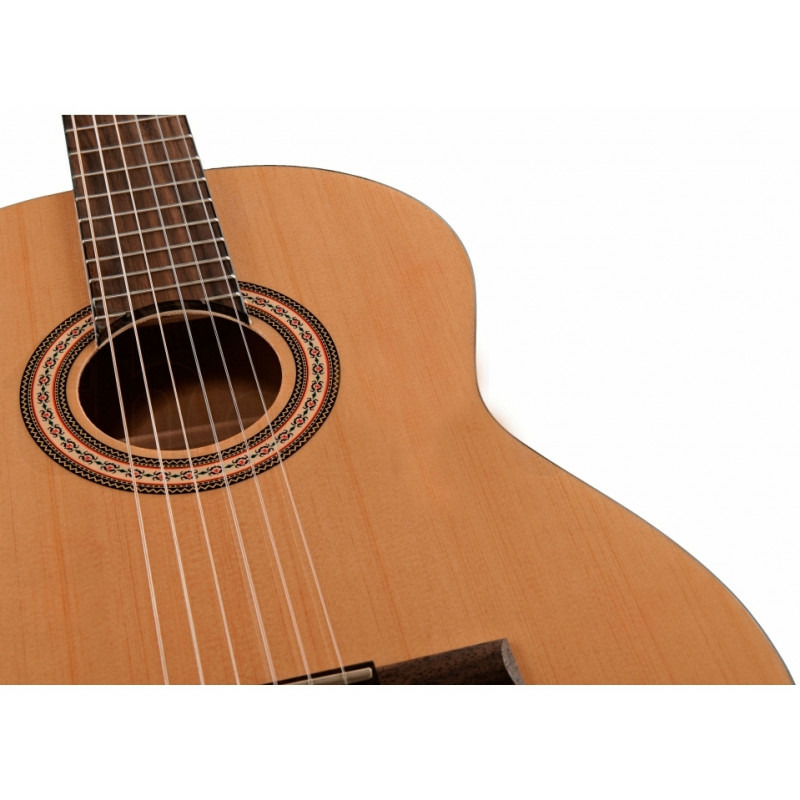 Для более теплого и яркого звучания, превосходно раздающегося в помещениях небольших небольших размеров, основная часть корпуса этой модели создавалась из древесины палисандра. Верхняя дека, выполненная из древесины ели, придает звучанию данного инструмента упругий, яркий тон с большей ясностью и определенностью. Вы не найдете лучшей акустической гитары, предлагаемой по этой цене!