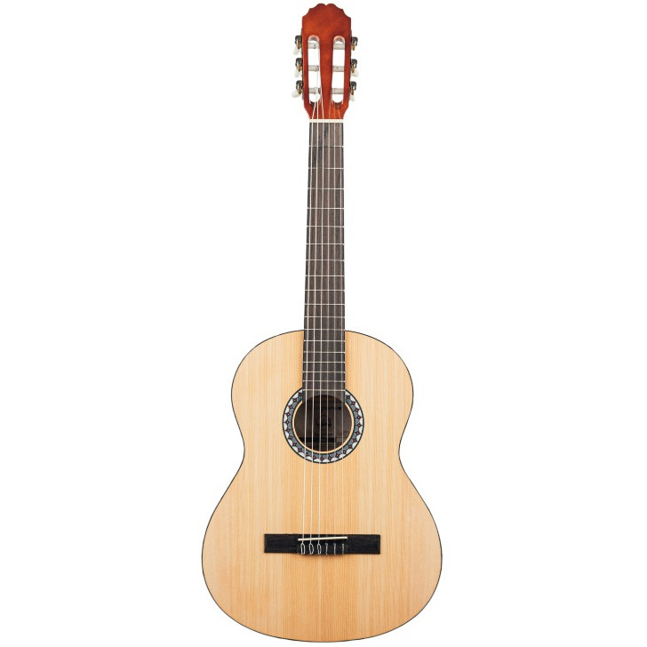 Для начинающих гитаристов, особенно детей, полноразмерная акустика слишком большая, поэтому лучшим вариантом будет трехчетвертная классическая гитара GEWA pure Classical Guitar Basic Plus Natural 3/4. У нее не только удобный размер, но и доступная цена, которая не повлияла на высокое качество изготовления. Удобный профиль грифа обеспечивает плавный переход между аккордами и поскольку у этого инструмента насыщенный современный тембр, на ней можно разучивать как любимые мелодии, так и классические этюды. Это также отличная гитара для путешествующих музыкантов, которая имеет нижнюю деку и обечайки из липы, а топ из ели, таким образом, звучание хорошо сбалансированное с яркими акцентами.