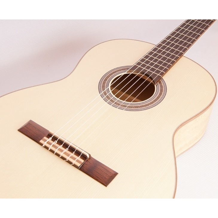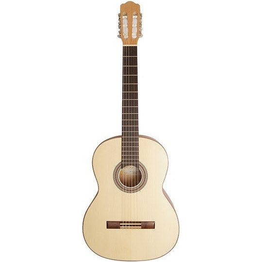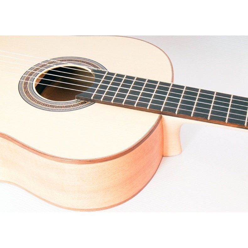 SS500 Eco - классическая гитара размера 4/4 от компании Hora. Верхняя дека инструмента сделана из ламината ели, а нижняя дека и обечайки - из ламината ясеня. Гриф выполнен из клена и имеет палисандровую накладку с 18 ладами. Бридж гитары также сделан из палисандра.