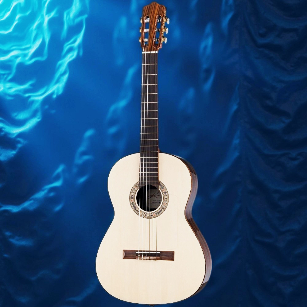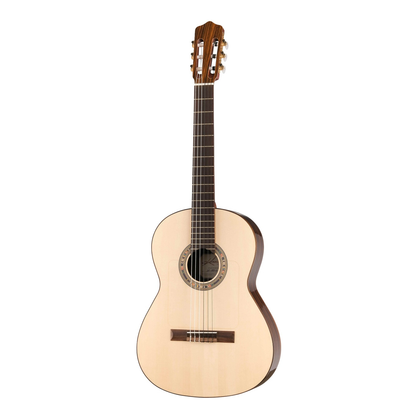 Kremona RM Rosa Morena Flamenco Series классическая 6-ти струнная гитара, имеет верхнюю деку - массив европейской ели, заднюю деку и обечайку ламинат индийского палисандра, гриф из гондурасского кедра, накладка грифа, бридж - индийский палисандр.