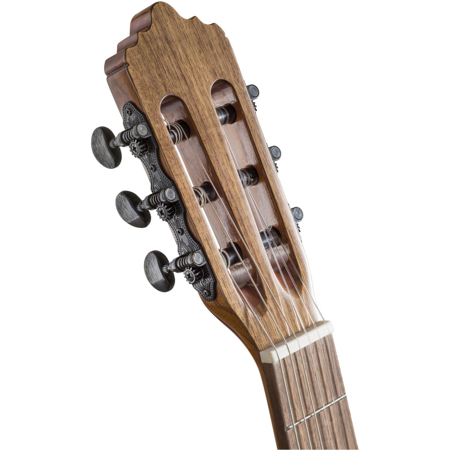 Классическая акустическая гитара LA MANCHA Perla Ambar S-N имеет размер 4/4 и обладает насыщенным, глубоким звучанием. Верхняя дека этого инструмента сделана из массива немецкой ели, нижняя дека и обечайки – из фигурного клёна, гриф – калантас (лиственная древесина из Юго-Восточной Азии), дополненный карбоновым армированием. Накладка на гриф и подставка выполнены из ованкгола. На гитаре установлены струны Savarez Cantiga со смешанным натяжением 510MRJ и чёрные стильные колки с черными бутонами.