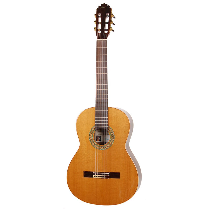 Manuel Rodriguez C3 CEDRO - классическая гитара, цельный красный кедровый верх, задняя часть и боковины - односторонний ламинированный палисандр, накладка - палисандр. Прекрасный выбор для профессионалов и любителей. Гитара имеет яркое натуральное звучание благодаря высококачественным материалам.