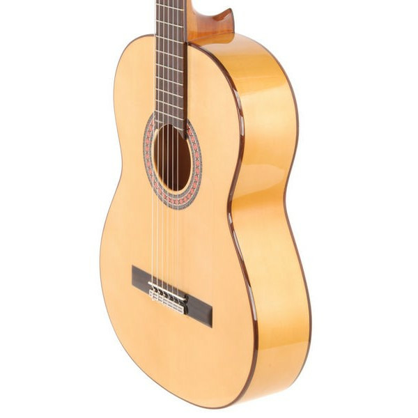 Manuel Rodriguez C3 Flamenco - классическая гитара, цельный еловый верх, задняя часть и боковины - односторонний ламинированный sicomoro, накладка - палисандр. Прекрасный выбор для профессионалов и любителей. Гитара имеет яркое натуральное звучание благодаря высококачественным материалам.