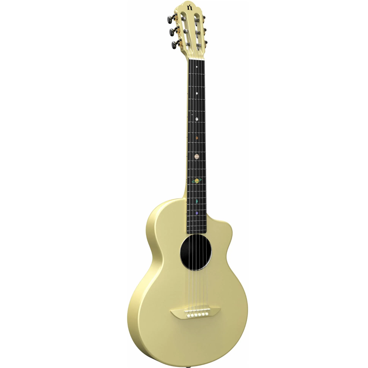 COSMOS Glaze Gold — это классическая гитара серии Cosmos, созданная для музыкантов, которые постоянно в движении. Корпус, верхняя дека, гриф и накладка полностью изготовлены из карбонового композита — материала, который значительно прочнее и долговечнее дерева. Он не подвержен деформации при скачках температуры и влажности, не портится со временем и устойчив к механическим воздействиям. Именно эти характеристики в сочетании с легким весом позволяют гитаре быть идеальным вариантом для любых путешествий: будь то снежные горы, пляжи или даже пустыни .