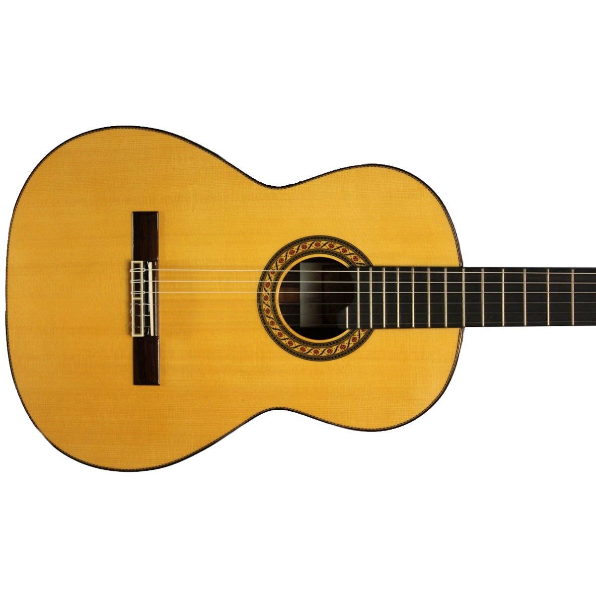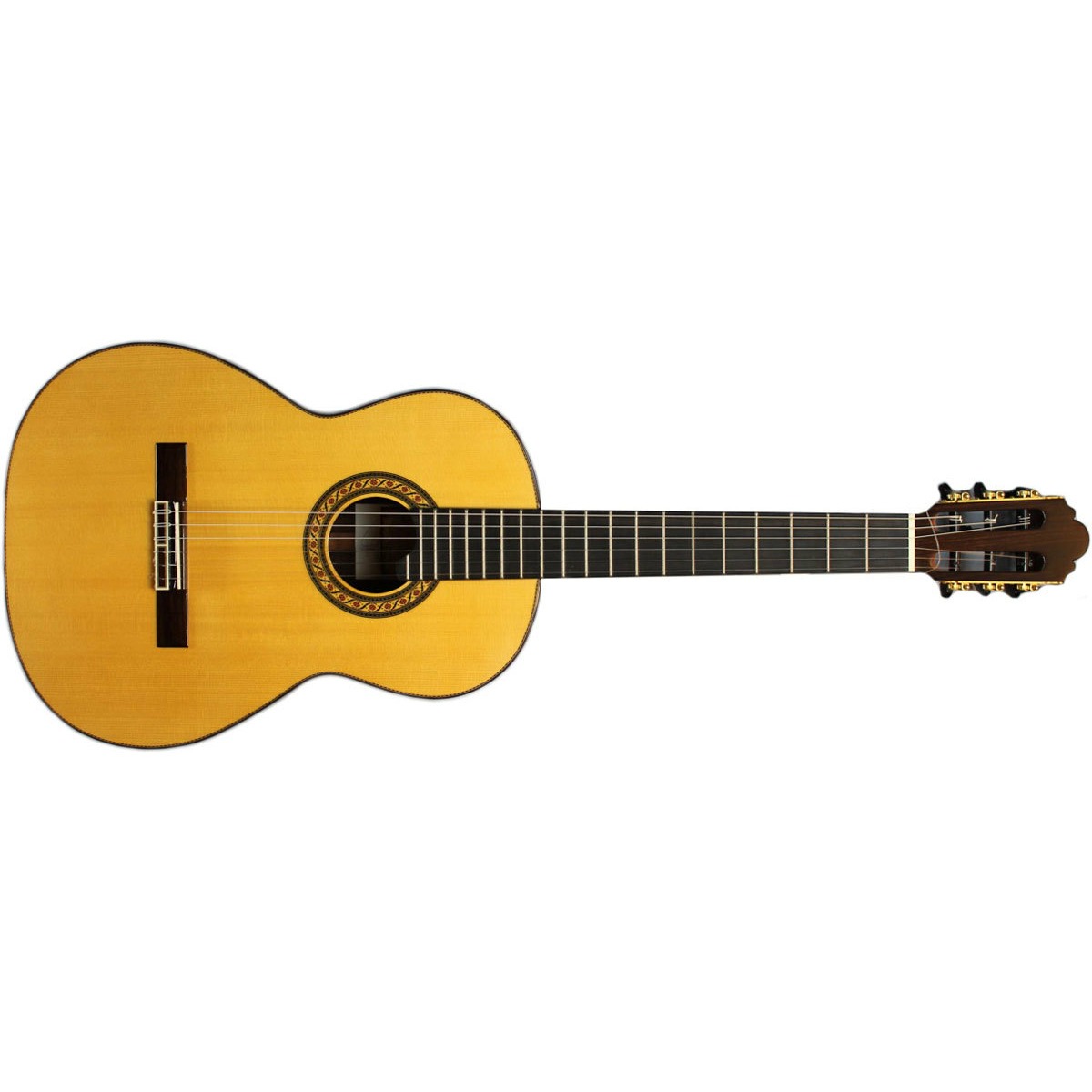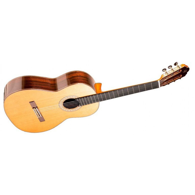 Prudencio 138 - изысканная классическая гитара с необыкновенно ясным и проникновенным тембром, отборная и цельная древесина лучших акустических пород придает невероятный объем и глубину звучания. Кедровый гриф специально усилен вставкой из черного дерева по центральной оси. Палисандровая окантовка, традиционный декор розетки и роскошная фурнитура. Настоящий концертный инструмент!
