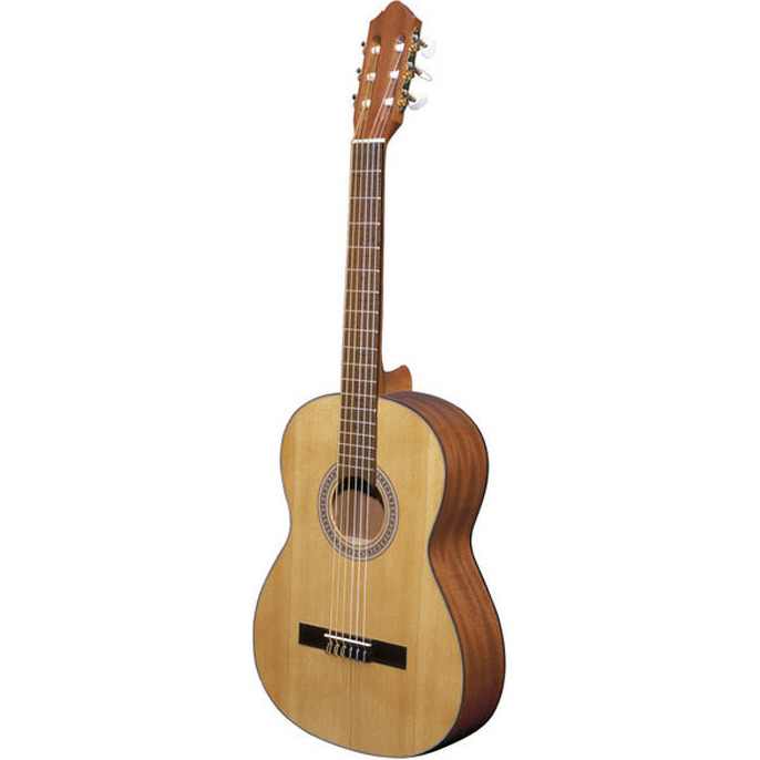 Strunal 4655 - качественная классическая гитара размера 1/2 от чешского производителя. Это очень удобный инструмент, который может похвастаться великолепным внешним видом, широким динамическим диапазоном и приятным, мягким звучанием. Гитара Strunal 4655 хорошо подойдет для начинающих исполнителей и учащихся музыкальных школ. Ее верхняя дека сделана из ели, а нижняя дека с обечайкой из махагони. Благодаря такому сочетанию древесины удается добиться плотного, объемного и насыщенного теплыми средними частотами тембра, который легко впишется практически в любой музыкальный контекст. Гриф у данной модели выполнен из махагони и имеет накладку из бука. Открытая колковая механика с латунным покрытием надежно держит строй и обеспечивает удобство настройки. Бридж из бука отлично передает вибрацию струн на корпус, гарантируя тем самым наилучший резонанс.