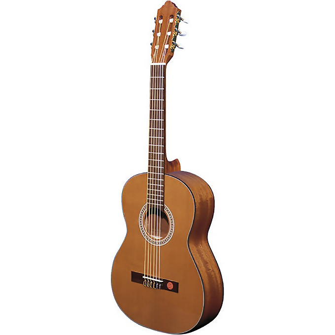Strunal 4855 Carmen – качественная классическая гитара размером 4/4, изготовленная в Чехии. Верхняя дека гитары выполнена из массива кедра, который обеспечивает очень теплое, мягкое и объемное звучание. Нижняя дека, обечайка и гриф сделаны из махагони, накладка на гриф и бридж - из палисандра. Резонаторное отверстие украшает стильная деревянная инкрустация. На данную модель установлены высококачественные нейлоновые струны.