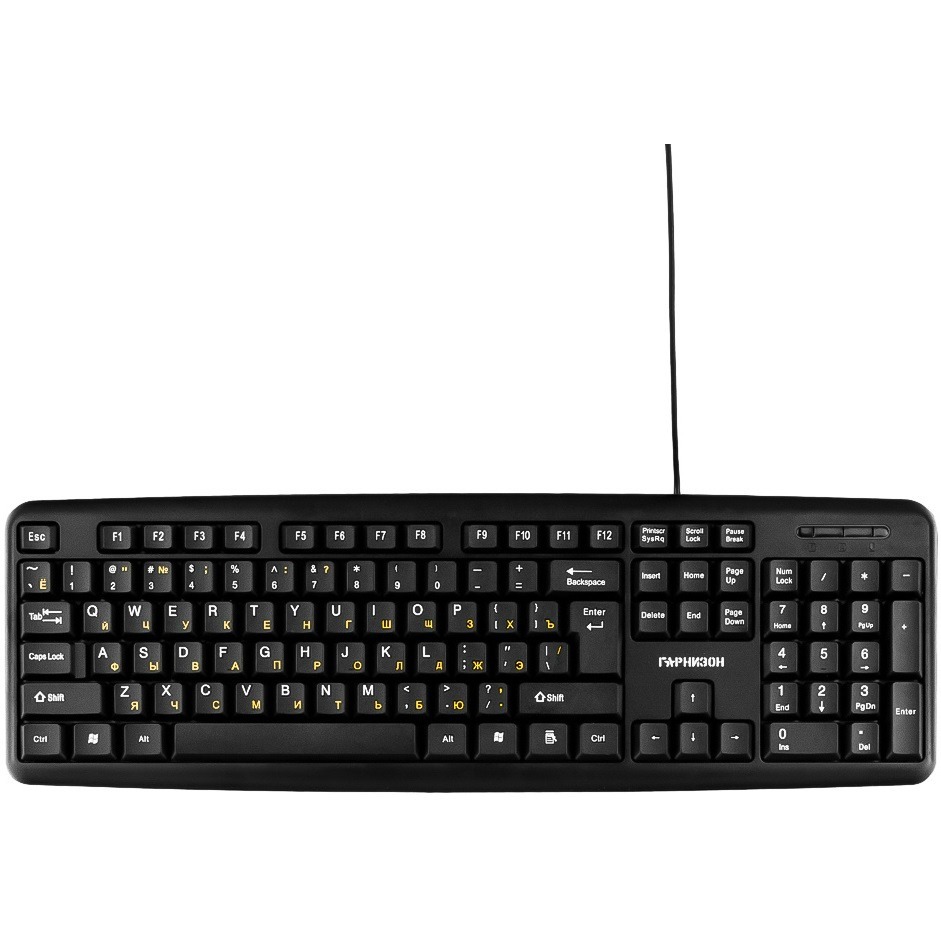Гарнизон GK-100XL это небольшая по размерам, удобная в ежедневном использовании проводная клавиатура, которая поможет вам более уверенно взаимодействовать с ПК и управлять его работой. Для подключения клавиатуры к компьютеру используется интерфейс USB. Клавиши устройства имеют достаточно крупные размеры, что позволяет легко считывать с них информацию и более уверенно вводить данные в персональный компьютер. На клавиши нанесены символы русского и английского алфавита. Для более удобного использования в конструкции Гарнизон GK-100XL предусмотрен мультимедийные клавиши и цифровой блок, что к примеру пригодится поклонникам компьютерных игр. Толщина клавиатуры - обычная. Устройство может похвастаться небольшими размерами. Корпус клавиатуры изготовлен из качественного, прочного пластика и окрашен в черный цвет. Стоит отметить и приятный для глаз дизайн корпуса, благодаря которому данная клавиатура сможет занять достойное место на рабочем столе пользователя.