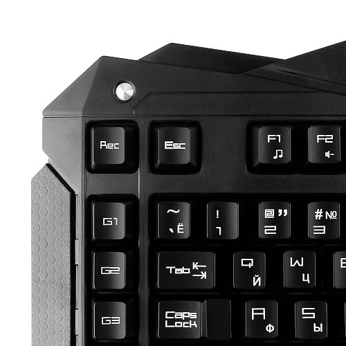 равномерная подсветка(днем и ночью всё ок - регулируется), матовая целиком - без пыли, легко чистить, макросы работают