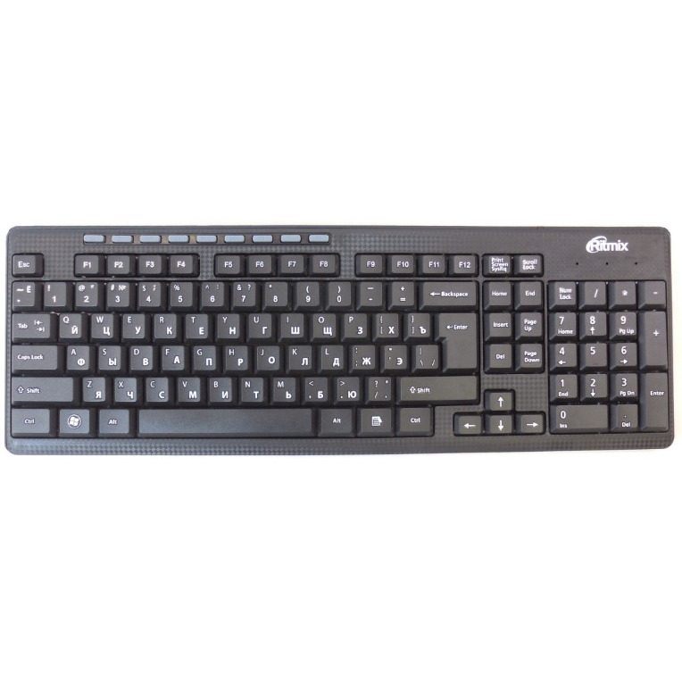 Ritmix RKB-255W – беспроводная клавиатура с классической раскладкой и интерфейсом USB с фактурой пластика "под карбон".