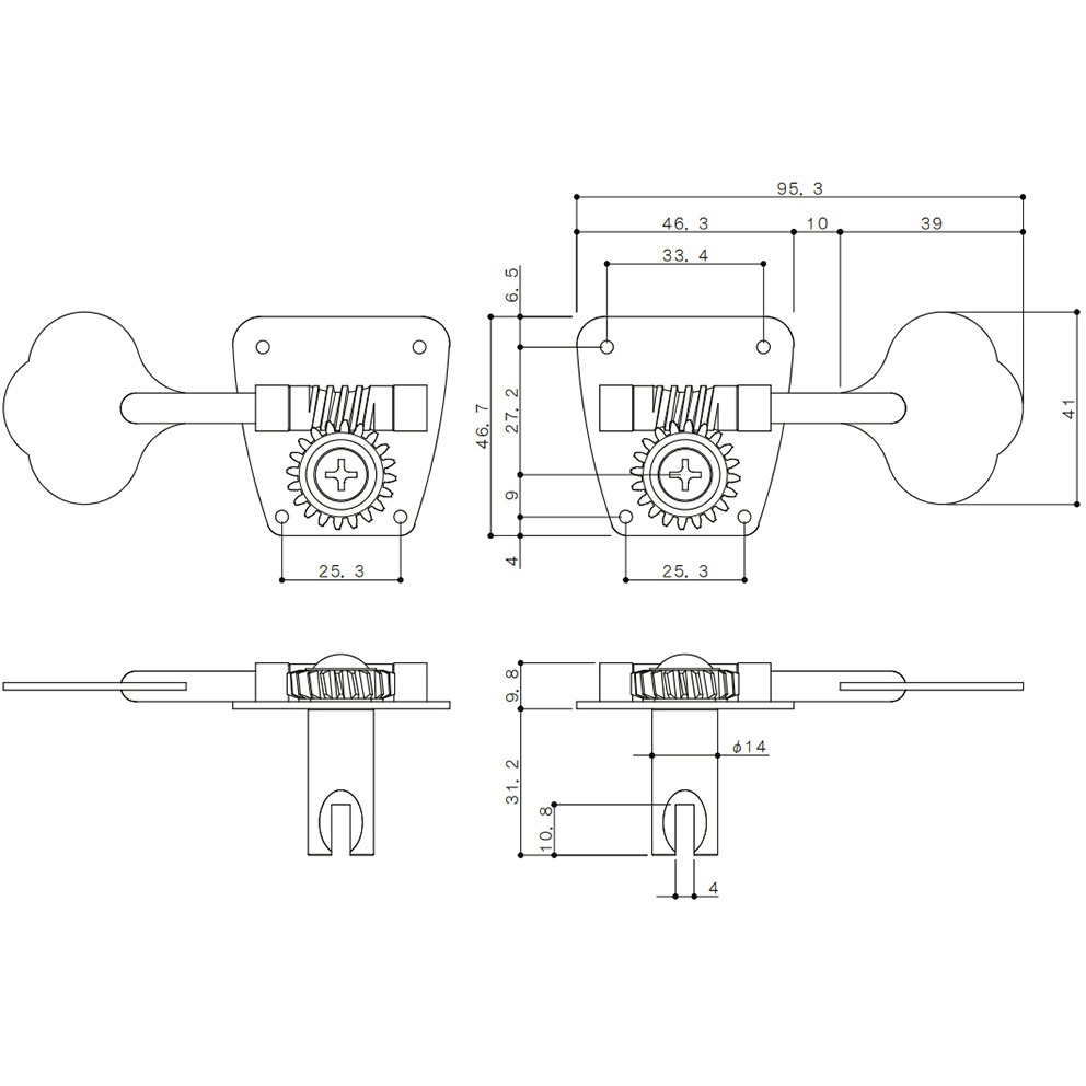 FB30-B L4 - комплект из четырех колков (левых, в линию) для бас-гитары от японской компании Gotoh. Они отлично выглядят и за счет передаточного числа 1:20 гарантируют точную настройку вашего инструмента. Колки сделаны из материалов высокого качества, благодаря чему обеспечивается их продолжительный срок службы. Жесткость хода можно изменять с помощью винта. Все необходимые шурупы идут в комплекте.