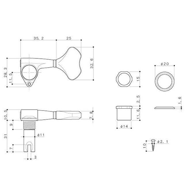 GB350-GG L4 - комплект из четырех колков (левые, в линию) для бас-гитары от японской компании Gotoh.