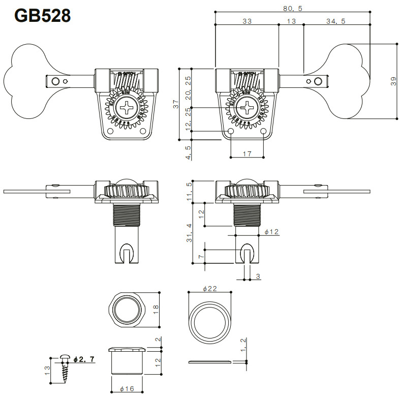 GB528-N-L2+R2 - комплект из четырех колков (2 левых и 2 правых) для бас-гитары от японской компании Gotoh. Они прекрасно смотрятся, отличаются высокой надежностью и за счет передаточного числа 1:26 гарантируют точную настройку вашего инструмента. Колки сделаны из материалов наилучшего качества и безупречно собраны, благодаря чему обеспечивается их продолжительный срок службы и плавность хода. Все необходимые шурупы идут в комплекте.