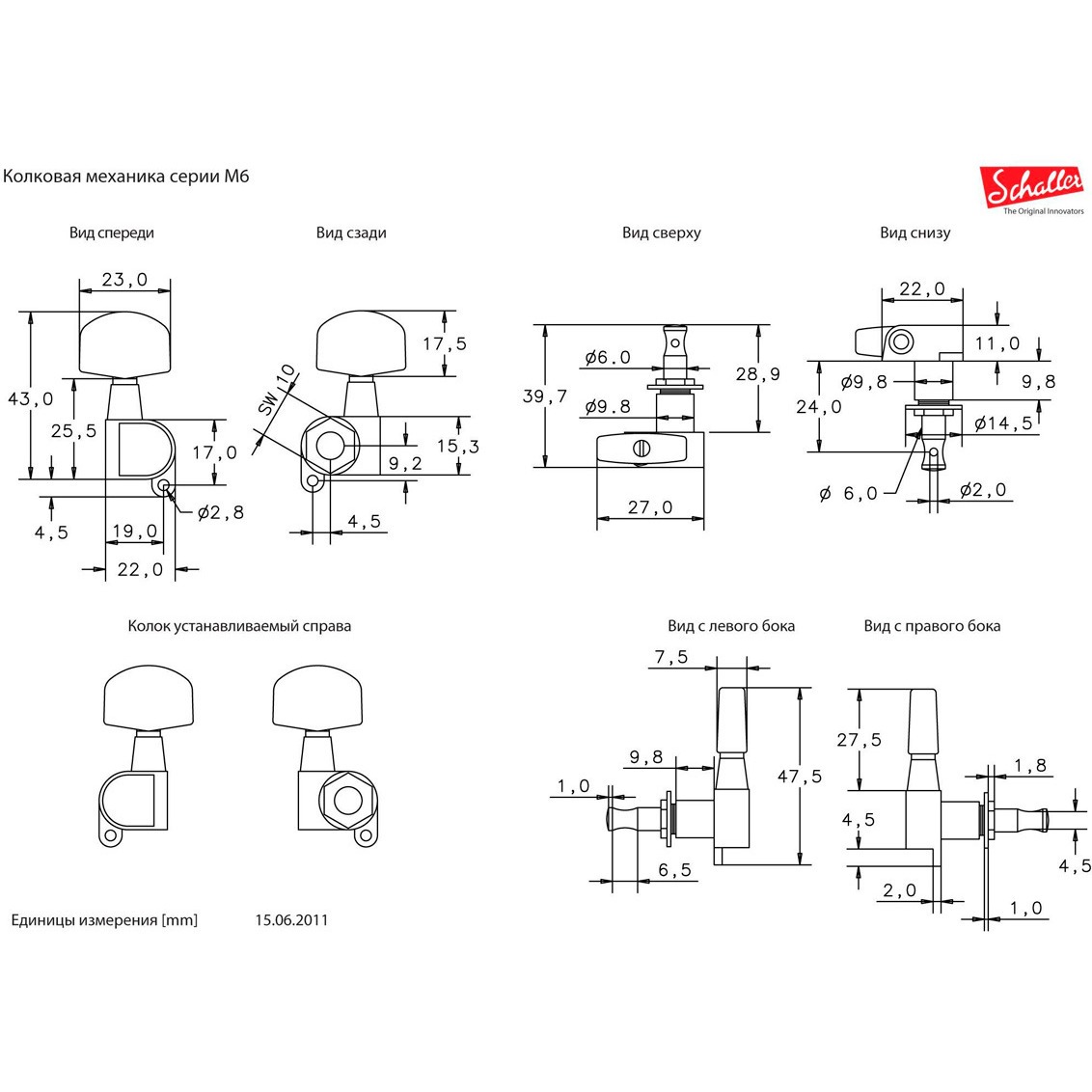 SCHALLER M6BC I.-Locking (АРТ.10010423.02.52) - колки серии M6 2000 Locking, 3-слева+3-справа.