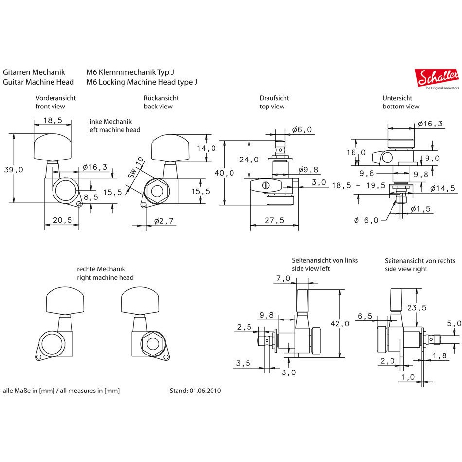Серия M6 2000. Классика от Шаллер! Наиболее популярная классическая серия колков! Используется более чем на 7 миллионах инструментах! Высочайшее качество и точность настройки! Износостойкость! Шаллер-первая в мире компания, разработавшая и запатентовавшая колки с системой запирания"Locking" (струна вставляется в камеру с ослабленным зажимным винтом, который затем фиксируется и обеспечивает нужную настройку струны на длительный срок). "Самоблокирующаяся" конструкция позволяет осуществлять "деликатную" и устойчивую настройку. Менять струны можно быстро и просто! Колки данной серии идеальны для систем "non-locking tremolo". Все колки покрываются специальной защитной смазкой, разработанной компанией Шаллер.