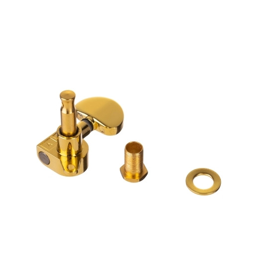AD-016JP - комплект из шести колков для гитары от компании Alice. Колки имеют надежные литые корпуса из цинкового сплава, отделку золотистого цвета и небольшие, удобные ручки также из цинкового сплава.