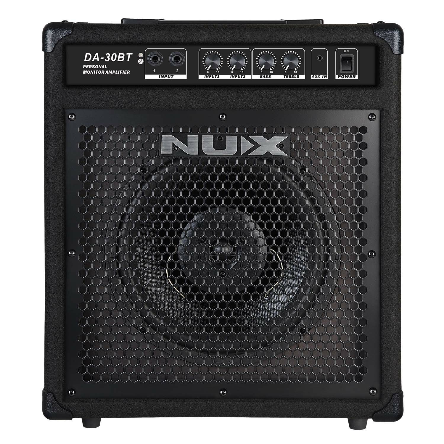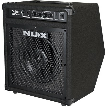NUX DA-30BT оснащен усилителем мощности 30 Вт, и 10" широкополосным динамиком. Частотная характеристика отлично подходит для разнообразных ударных инструментов, яркие высокие частоты, насыщенный бас. Двухполосный эквалайзер позволяет настроить звучание. DA-30BT оснащен Bluetooth подключением, что позволяет музыканту проще играть свои песни с усилителем.