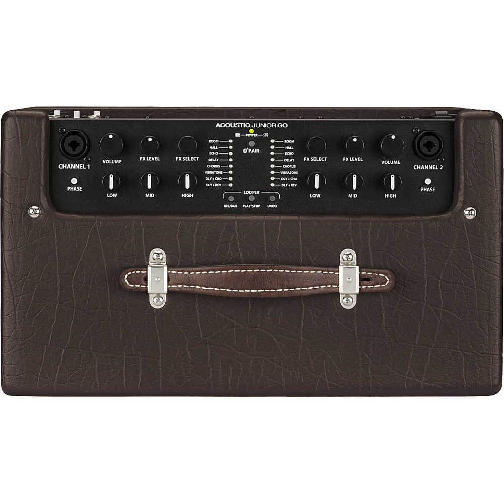 Комбоусилитель FENDER Acoustic Junior GO как утверждается производителем, был создан с учетом потребностей современных гитаристов. Усилитель может похвастаться встроенными эффектами, лупером и модулем Bluetooth. Модель Junior GO, рассчитанная на живые выступления и студию, получила два канала (гитара и микрофон). Выходная мощность аппарата составила 100 Вт. Под тканевым полотном спрятали один основной динамик на 8 дюймов и компрессионный твитер. Оба канала получили независимую эквализацию и эффекты, включая ревер, эхо, дилей и хорус.