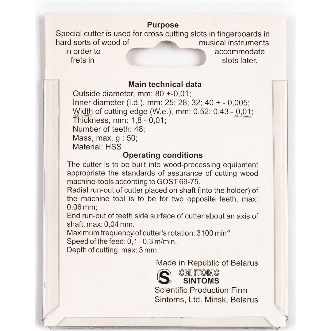 8018220 Комплект фрез для установки ладов, внутренний диаметр 25мм, толщина зуба 0.52мм, 21шт, Sintoms (Синтомс).