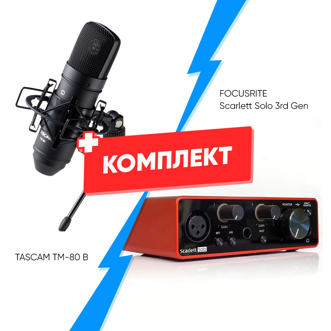 Комплект из звуковой карты FOCUSRITE Scarlett Solo 3rd Gen и студийного микрофона TASCAM TM-80 B