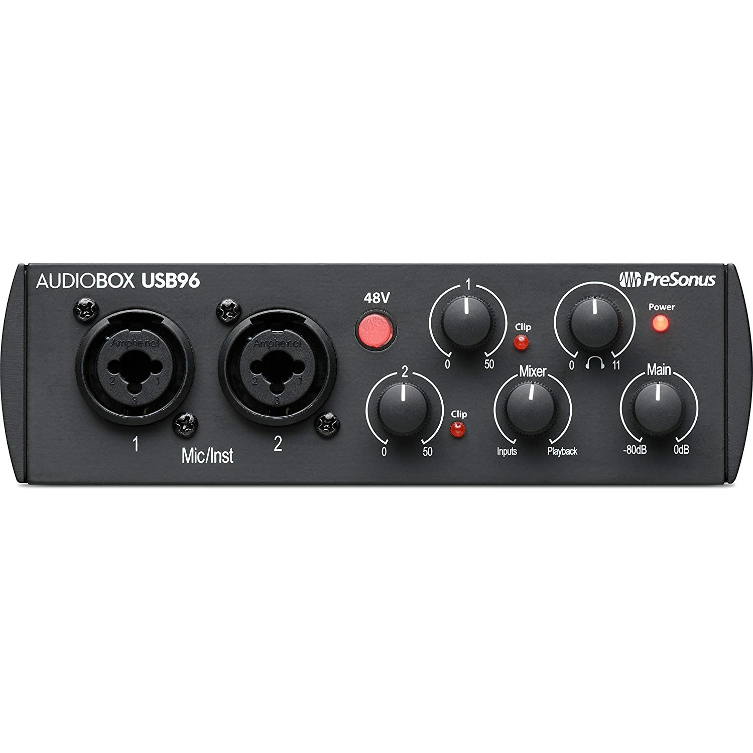PreSonus AudioBox 96 25th Anniversary Edition – это внешний USB-аудиоинтерфейс начального уровня, при этом обладающий высококачественными АЦ/ЦА-преобразователями с динамическим диапазоном 104 дБ, микрофонными предусилителями класса A и минимальными показателями задержки. Устройство идеально подходит для мобильной звукозаписи за счет прочного полностью металлического корпуса и питания по шине USB.