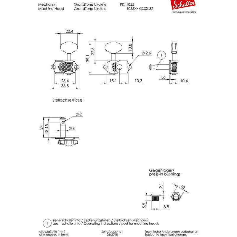 Schaller 10550703.42.32 GrandTune Комплект одиночной колковой механики для укулеле