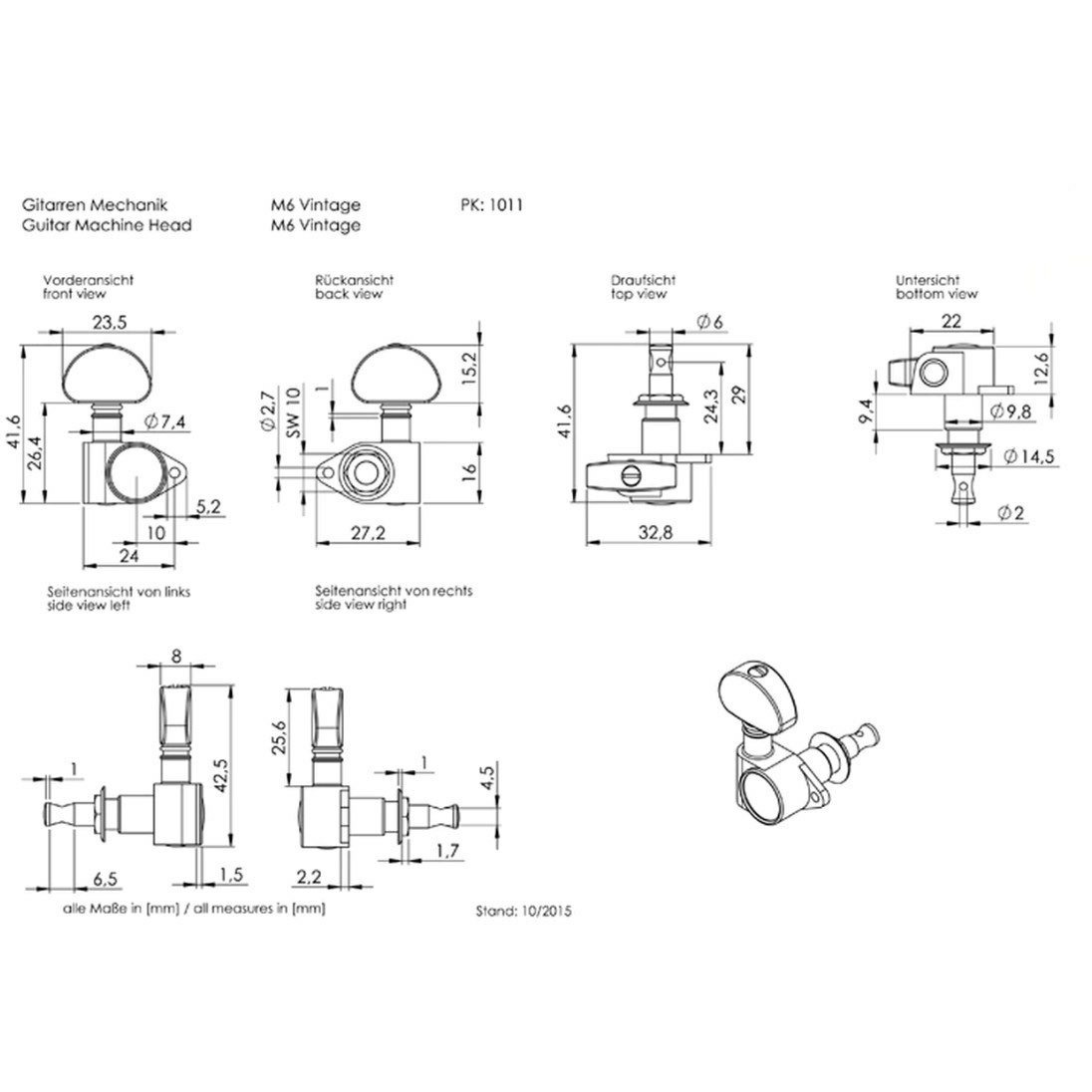 Schaller 10110523.13.36 M6 Vintage Комплект одиночной колковой механики, 3+3, золото.
