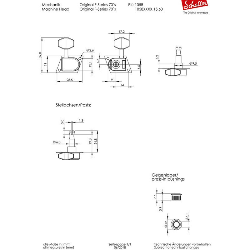 Комплект одиночной колковой механики SCHALLER 10580520.15.60 Original F-Series 70s