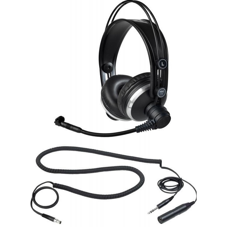 Гарнитура HSC171 Studio Set оснащена переключателем в оголовье, который отключает звук сразу после снятия наушников. Прочный 6-контактный разъем mini XLR позволяет быстро заменить кабель в случае его повреждения. В отличие от модели AKG HSC171, в комплекте с данной гарнитурой поставляется съемный витой соединительный кабель длиной 3 м.