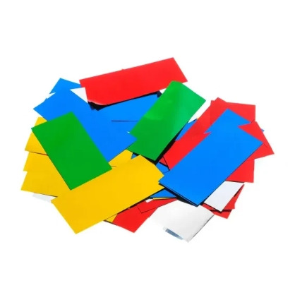 Это качественное металлизированное разноцветное конфетти размером 20 х 50 мм. Оно поставляется в упаковке весом 1 кг и рассчитано на использование с профессиональными конфетти-машинами. Благодаря форме и плотности материала, конфетти плавно и эффектно кружится в воздухе, создавая яркий визуальный акцент в момент выброса. Материал безопасен, не пылит и не прилипает к поверхности.
