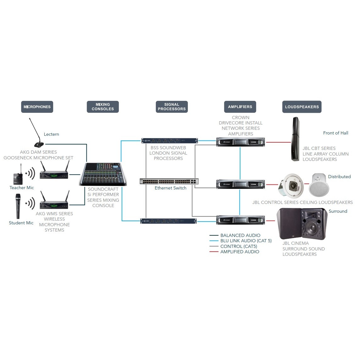 Сетевой сигнальный процессор BLU-103 от широко известной торговой марки BSS byHARMAN – это высокопроизводительный аудиоматричный контроллер со встроенным телефонным DSP, поддерживающим протокол Voice-over-IP. Семейство Soundweb LONDON предлагает комплексные системные решения для аудиторий в ВУЗе, презентационных залов и т. п.