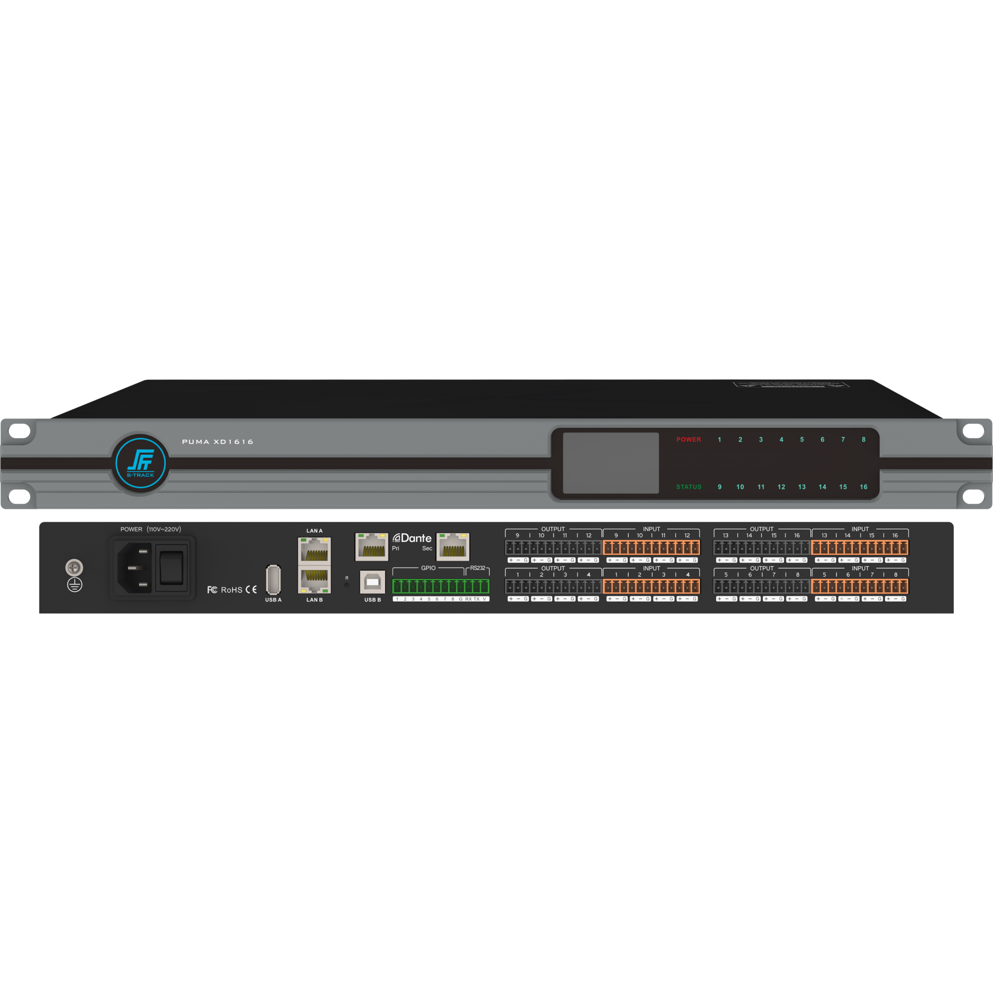 Цифровой аудиопроцессор S-Track PUMA XD1616 - устройство для цифровой обработки аналоговых и цифровых акустических сигналов с целью оптимальной настройки звучания аудиосистемы построенной на приборах производства S-Track или любых других производителей.