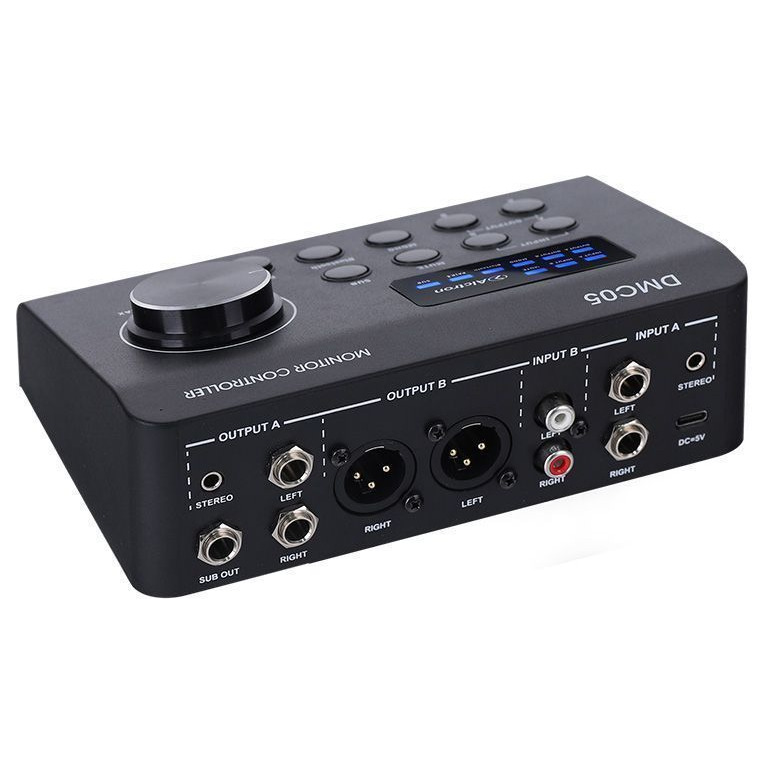 Это студийный мониторный контроллер, предназначенный для управления аудиосигналом в профессиональных и домашних студиях. Он позволяет регулировать громкость, отключать звук и управлять низкочастотным выходом (сабвуфером), а также поддерживает беспроводную передачу данных через Bluetooth 5.0.