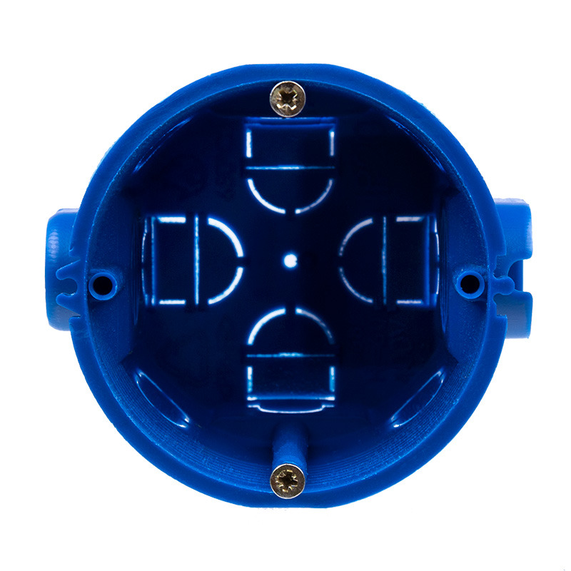 Коробка установочная (подрозетник) блочная используется для монтажа электроустановочных изделий в стены из кирпича и бетона. Возможно соединение в группу за счет интегрированного кабельного канала. Увеличенная глубина. Характеристики: Степень защиты: IP30 Назначение: монтаж электроустановочных изделий в стены из кирпича и бетона Саморезы: есть Межосевое расстояние: 71 мм Материал изделия: полипропилен Размеры: Ø 68 мм, h 60 мм Цвет: синий
