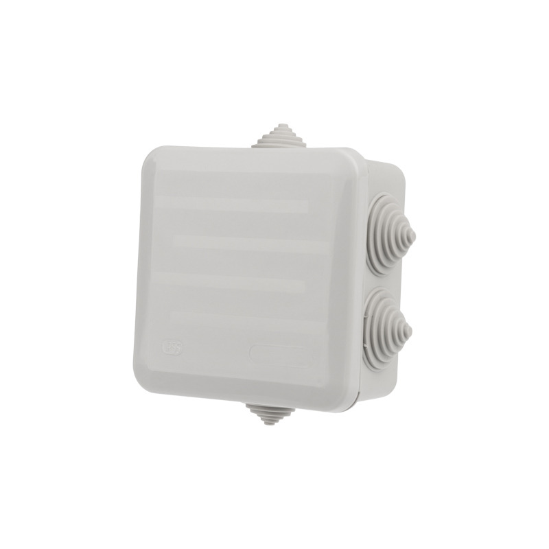 Распаячная коробка предназначена для защиты кабельных соединений от пыли, влаги и механических повреждений. Предназначена для крепления на стены, потолки, лотки. Укомплектована вводными сальниками. Характеристики: Размер: 100х100х50 мм Степень защиты: IP55 Цвет: серый Количество вводов: 6 Материал: полипропилен