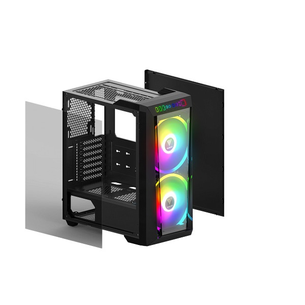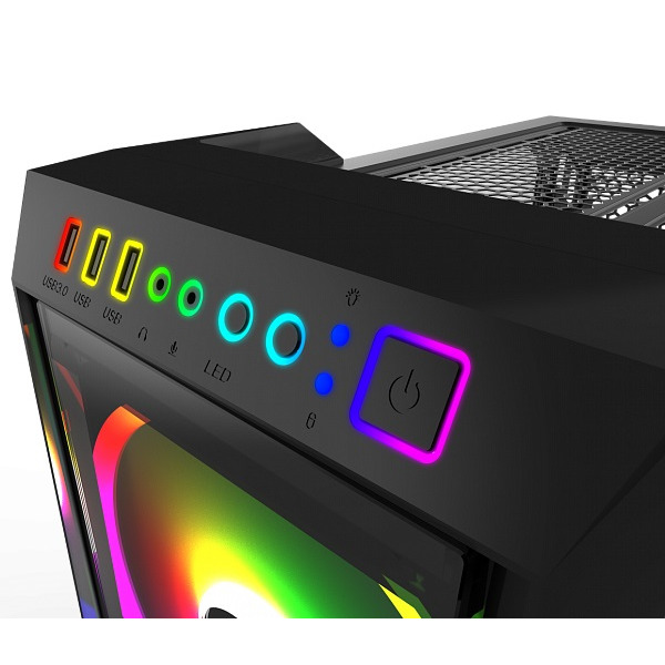 Благодаря эксклюзивному дизайну фронтальной панели из закаленного стекла, выполненной в трапециевидной форме и ставшей визитной карточкой корпусов Gamdias, обеспечивается мощный и эффективный воздушный поток.