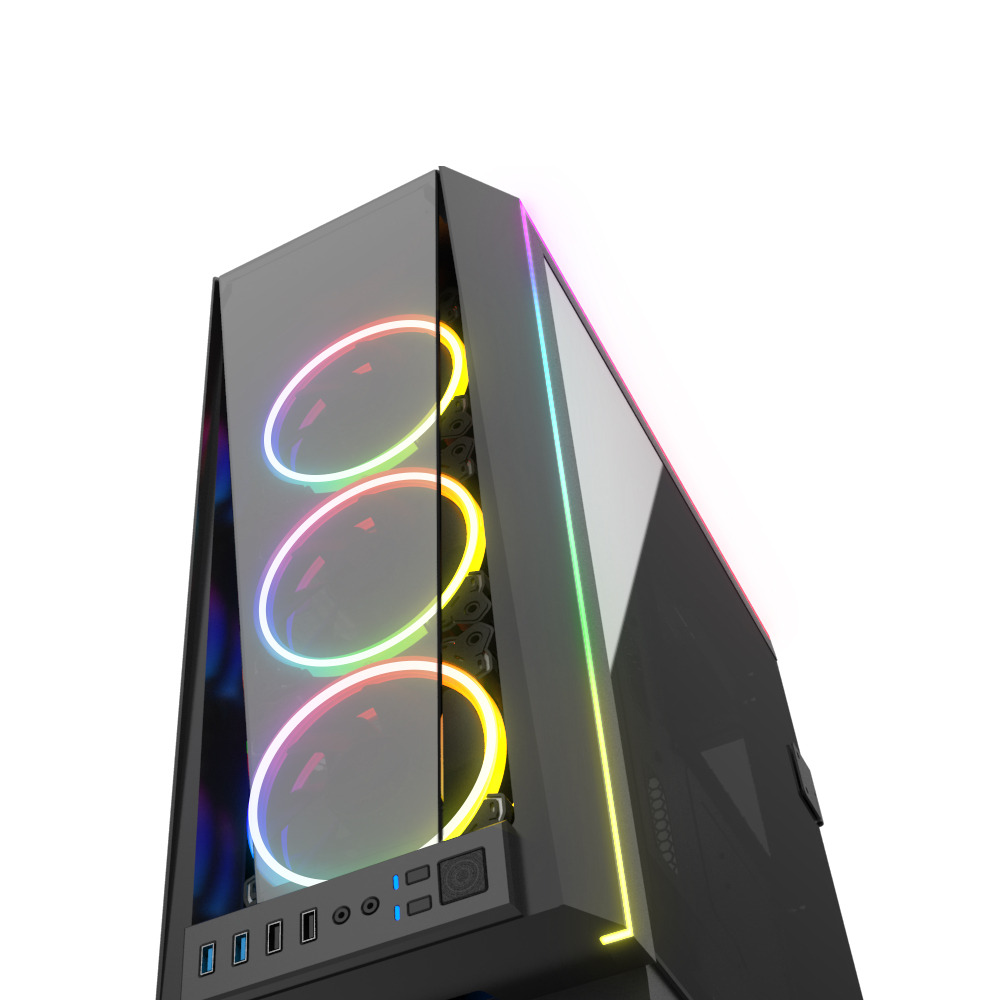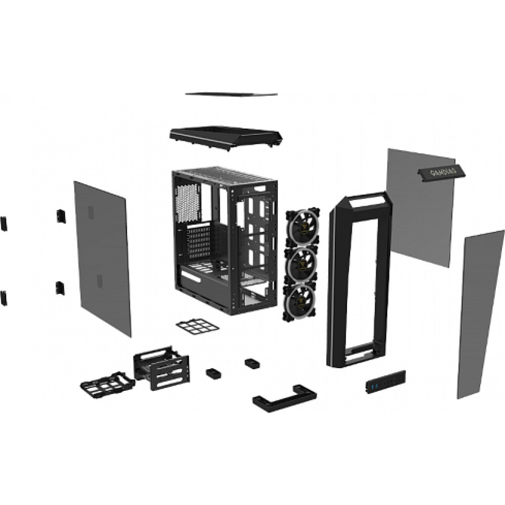 Корпус для игрового ПК Gamdias TALOS P1A премиум-класса с 2-мя боковыми дверцами из закаленного стекла, светодиодной подсветкой и 3-мя предустановленными RGB вентиляторами.