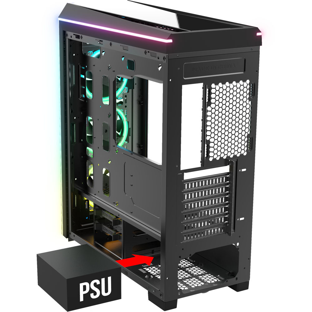Благодаря встроенной 5-вольтовой коммутационной панели RGB, осуществляется как ручная настройка освещения RGB, так и программная. С возможностью подключения до 6-и вентиляторов (6pin/8pin ).