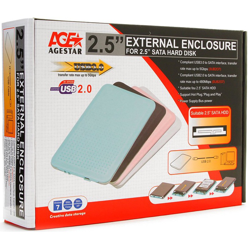 Работа осуществляется с жесткими дисками на 2.5” (форм-фактор), которые используют интерфейсы SATA I и SATA II. Подключение бокса к компьютеру осуществляется через сверхскоростной канал USB 3.0, гарантирующий моментальную и качественную передачу данных. Питание устройства Agestar 3UB2O7 также осуществляется от USB-порта.