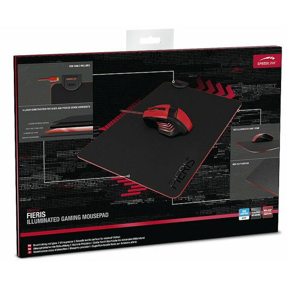 Идеальный коврик для мыши одинаково хорошо оптимизирован для всех настроек и разрешений датчика; независимо от типа мыши он обеспечивает скольжение с бескомпромиссной точностью вплоть до одного пикселя. Как FIERIS. Благодаря прочному материалу и нескользкой нижней стороне идеально и сверхточно контролируется скорость движения мыши. Дизайн FIERIS дополняется узкой светящейся полоской, которая погружает окружающую обстановку в атмосферный красный свет.