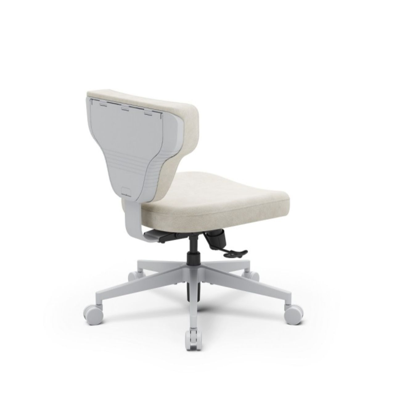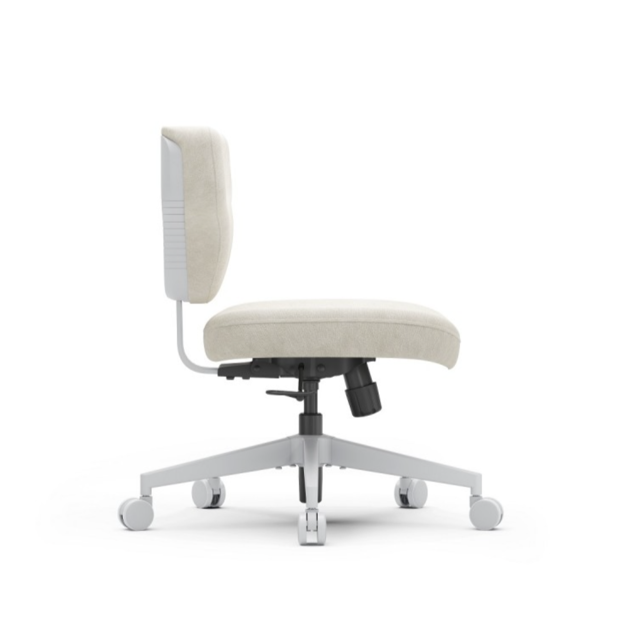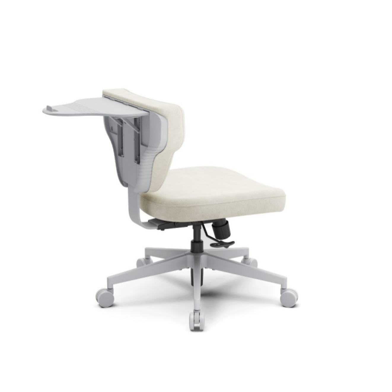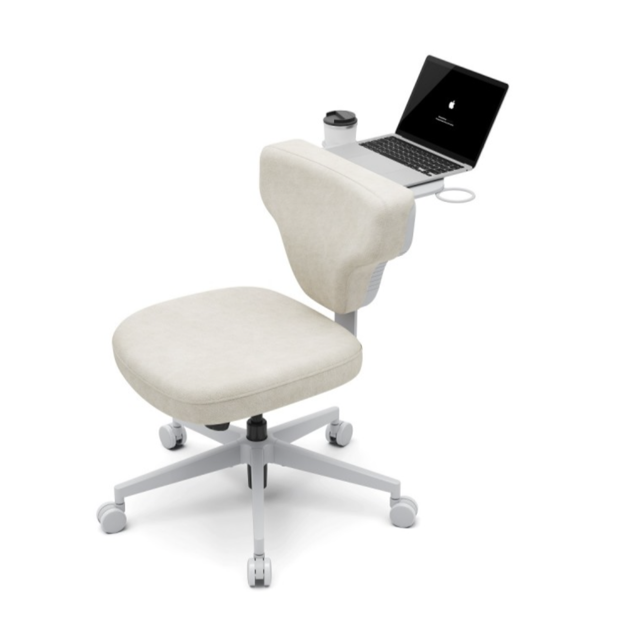 Это кресло гибридной посадки с ноутбучным столиком. Модель отличается минималистичным дизайном, отсутствием подлокотников и продуманной эргономикой, что обеспечивает свободу движений и комфорт при работе или отдыхе.