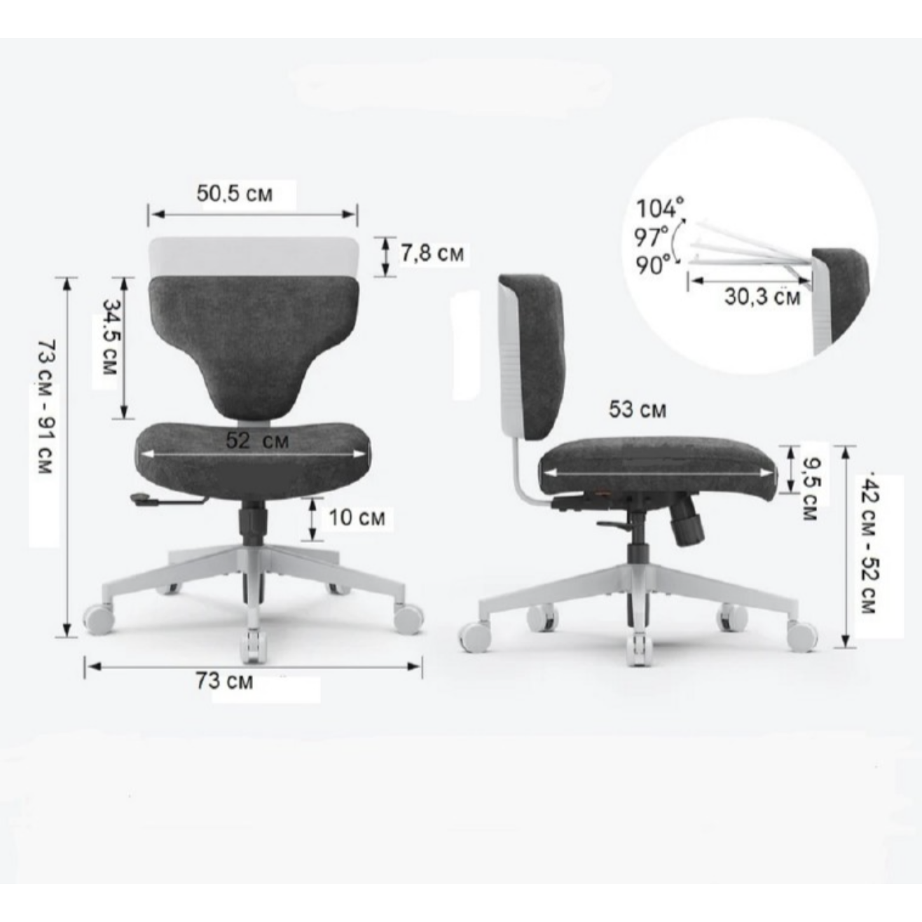 | Наклон спинки | От 90° до 105° |