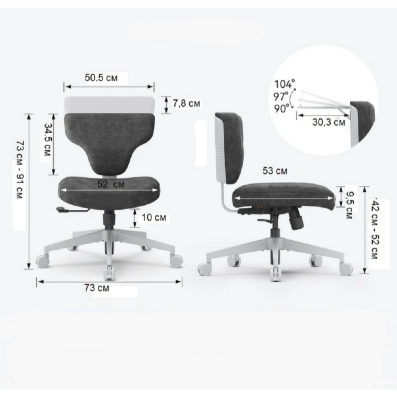 | Наклон спинки | Регулируется в диапазоне от 90° до 105° |