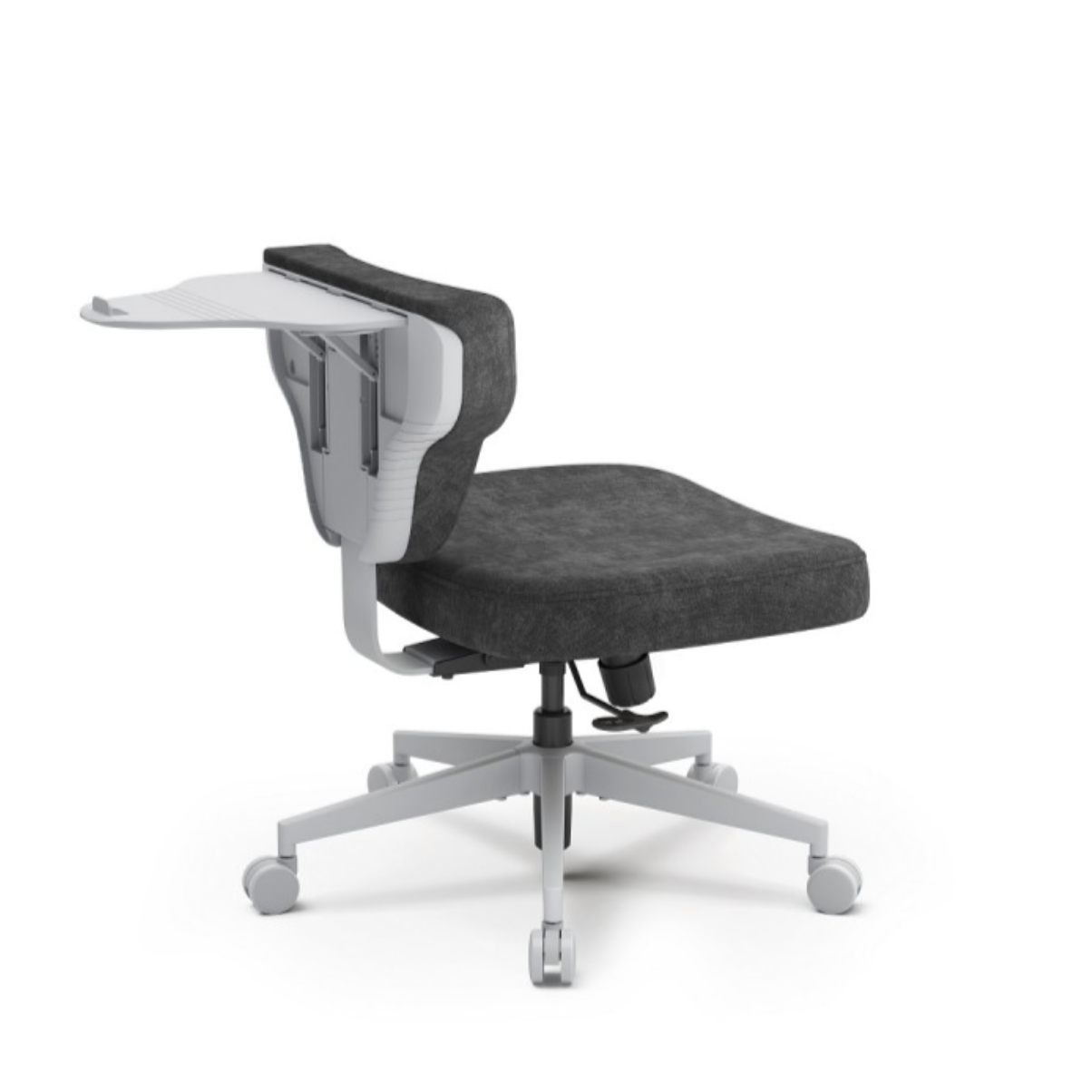 FoxGear FG-SHORTZ-F2-DG — это кресло гибридной посадки модели SHORTZ Fabric, размер 2, с ноутбучным столиком и тёмно-серой обивкой.